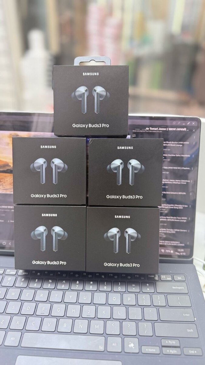 Profitez d'un son haut de gamme avec les Samsung Galaxy Buds3 Pro. Avec une suppression active du bruit, ces écouteurs sans fil offrent une qualité sonore immersive pour la musique et les appels. Conçus pour le confort, ils sont parfaits pour les entraînements, les déplacements et plus encore. Profitez d'une connectivité transparente avec vos appareils et améliorez votre expérience d'écoute dès aujourd'hui.