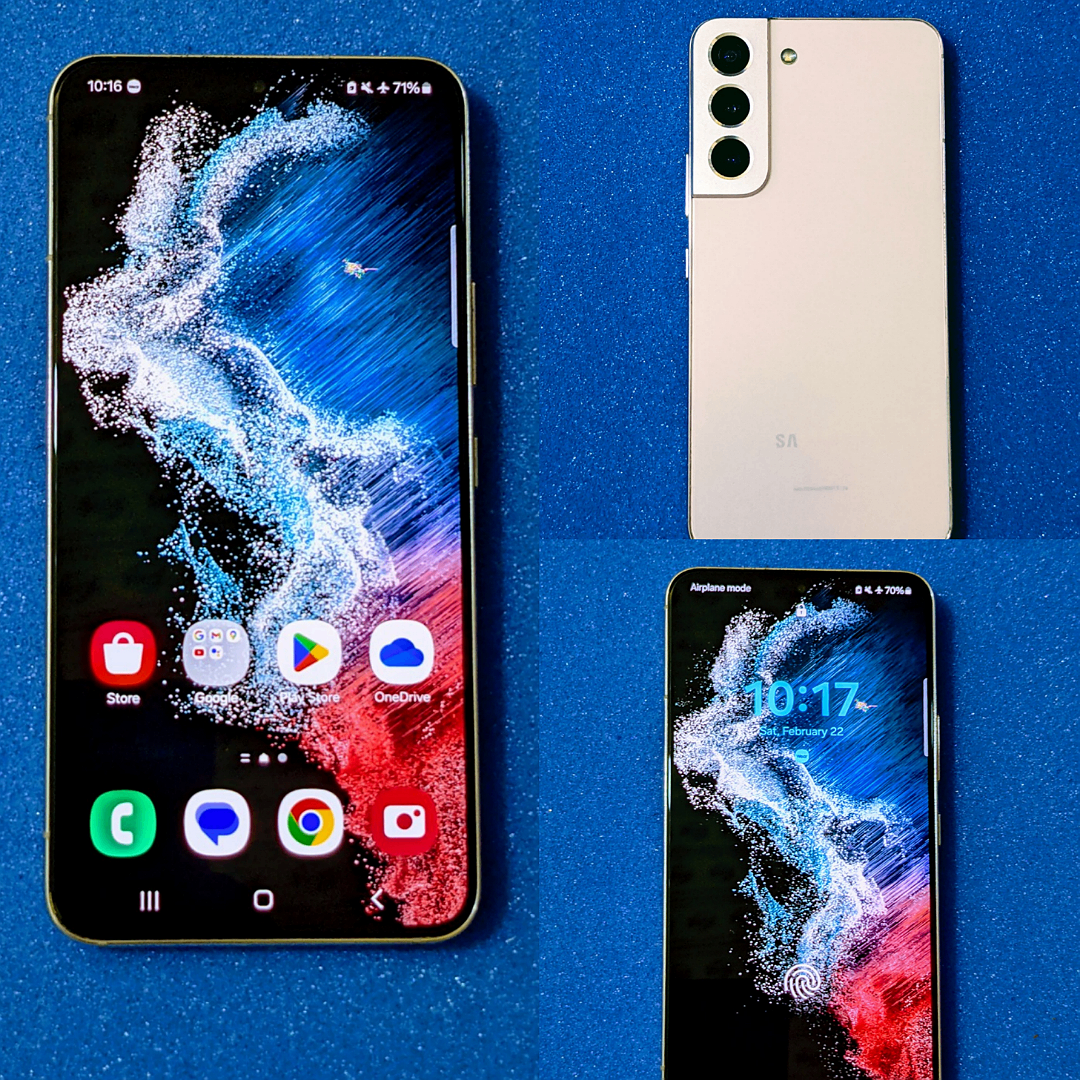 Samsung Galaxy S22 Gold |128GB| Fully Unlocked| SIM Ready| Android 14| FID - YES| Fingerprint - Yes-UD| B'tooth & WiFi- YES| Original Display - YES| BC - 3700 mAh| Cosmetic Condition - 96%