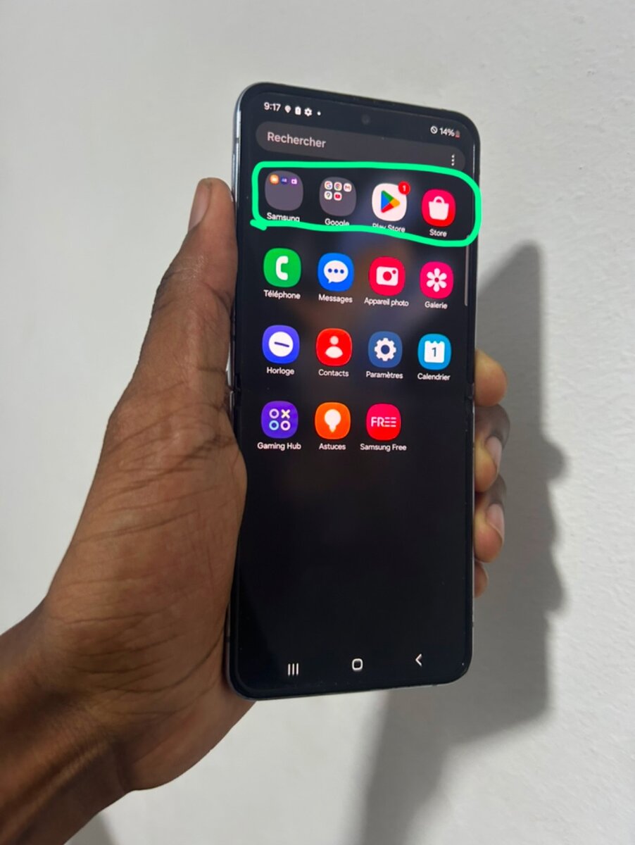 - Z FliP 4 - 8/256Go - le seul endroit entouré passe difficilement, il faut appuyer un peu plus fort - Prix: 125.000Fr