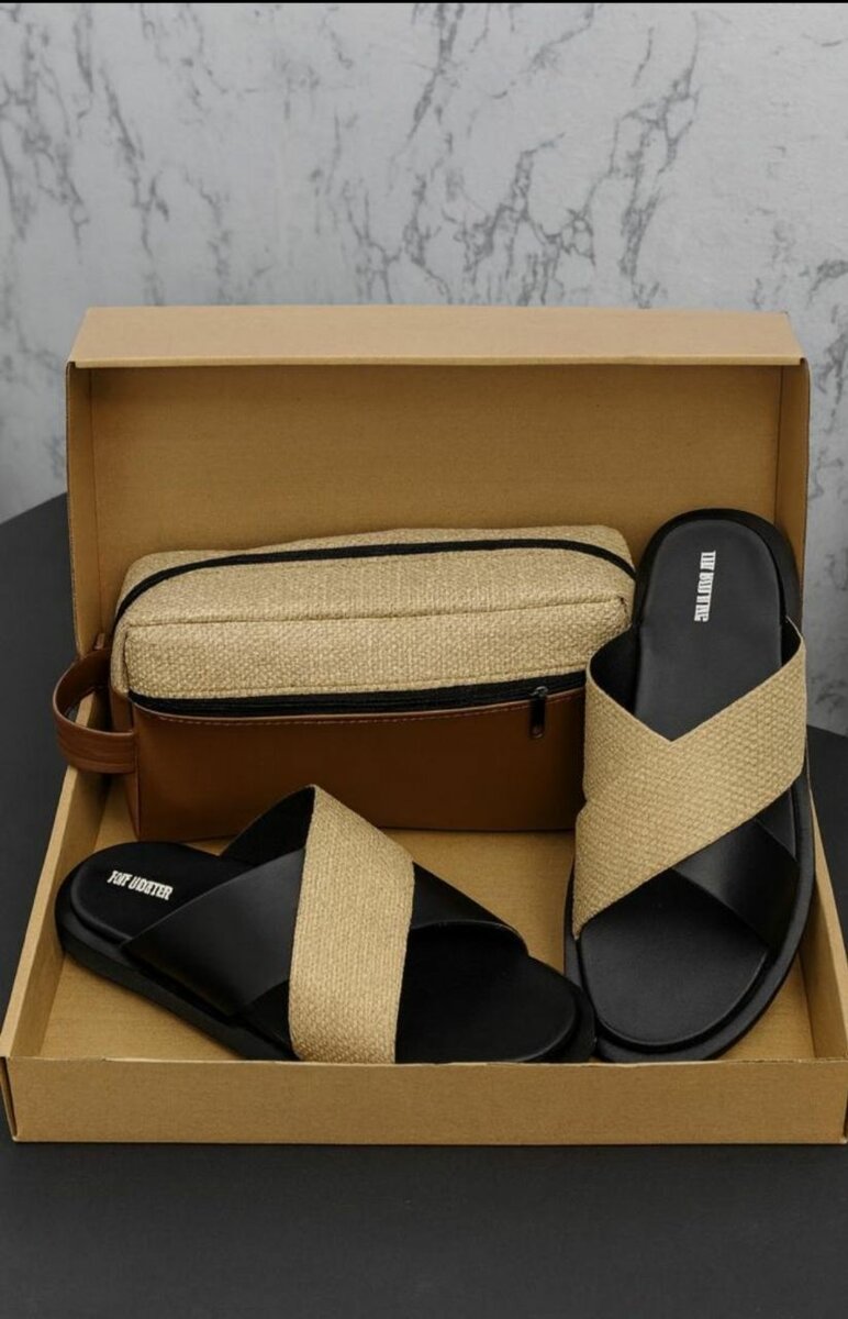 Ensemble Cadeau Élégant : Sandales Croisées Modernes et Trousse Chic