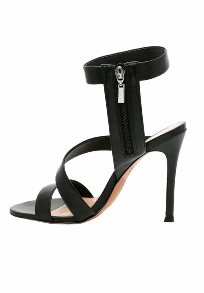 Découvrez ces sandales à talons noires, parfaites pour rehausser votre style avec une touche d'élégance. Conçues avec des lanières croisées et une fermeture éclair pratique, elles offrent à la fois confort et modernité. Idéales pour une soirée ou un événement spécial.