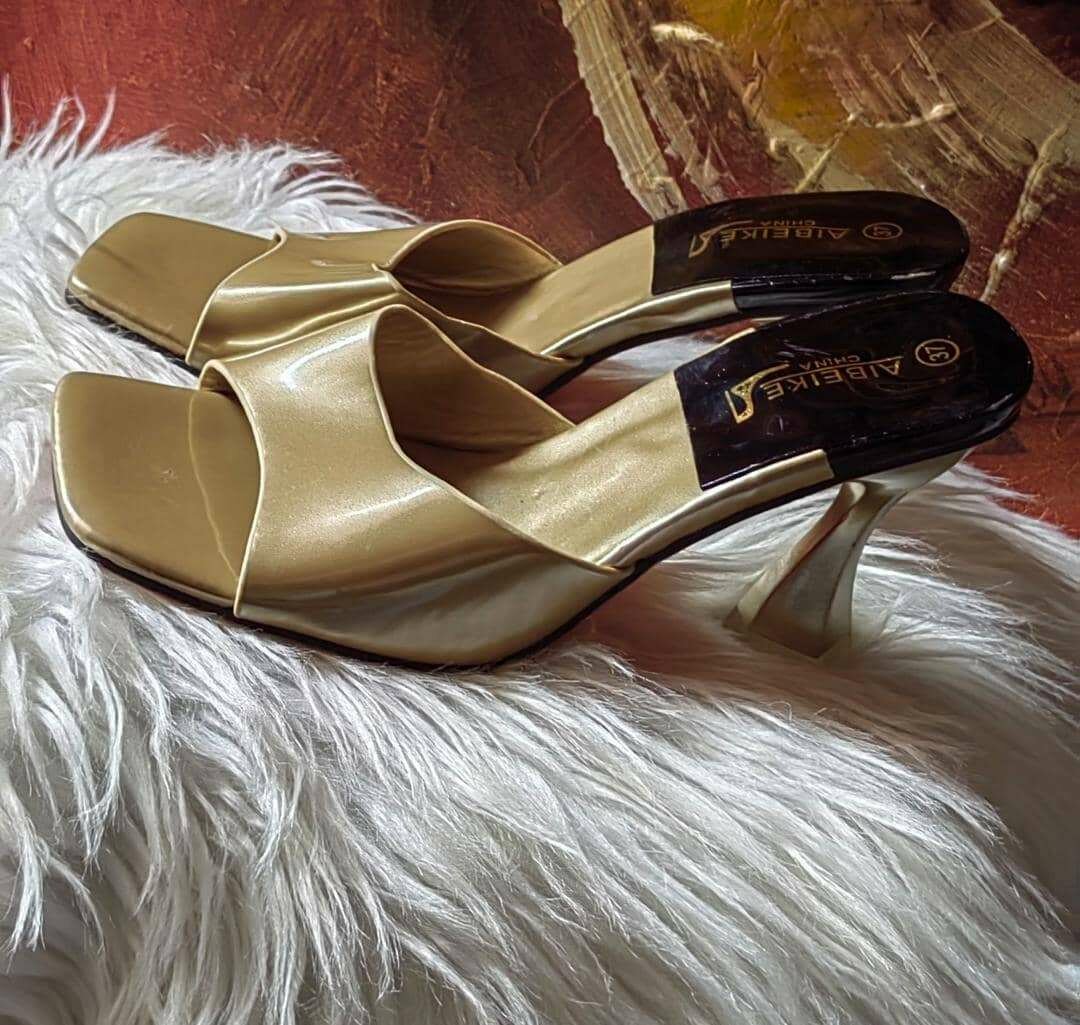 Ces sandales à talons élégantes en similicuir doré offrent un look chic et sophistiqué. Parfaites pour les soirées et occasions spéciales, elles se marient facilement avec vos tenues préférées pour un style raffiné. Leur design confortable assure un port agréable tout au long de la journée.
