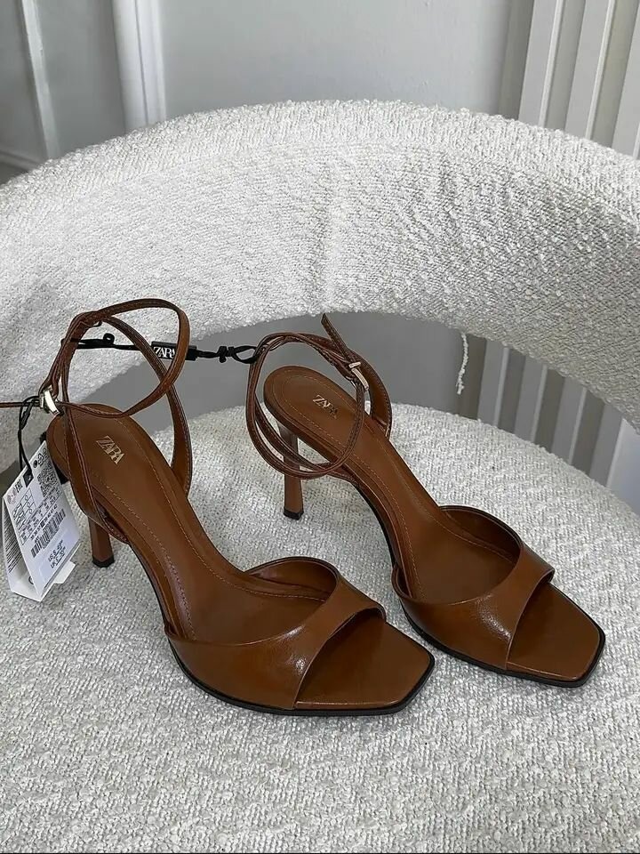 Élégantes sandales à talons hauts en cuir marron pour femmes. Conception ouverte avec bride cheville et orteils ouverts. Talons fins et élégants. Parfaites pour les occasions spéciales ou une soirée habillée.