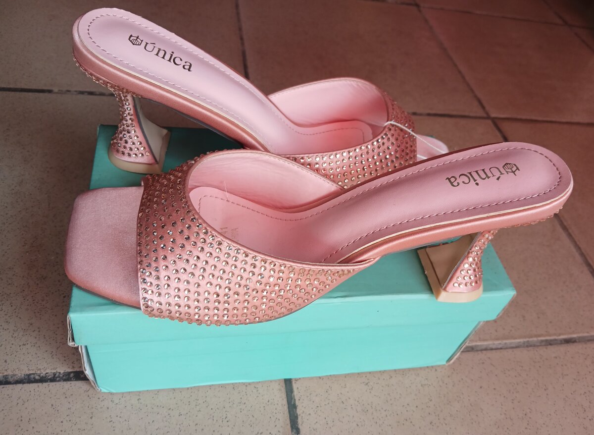 Sandales élégantes Unica avec talons hauts et strass, parfaites pour une soirée ou un événement spécial. Confortables et sophistiquées.