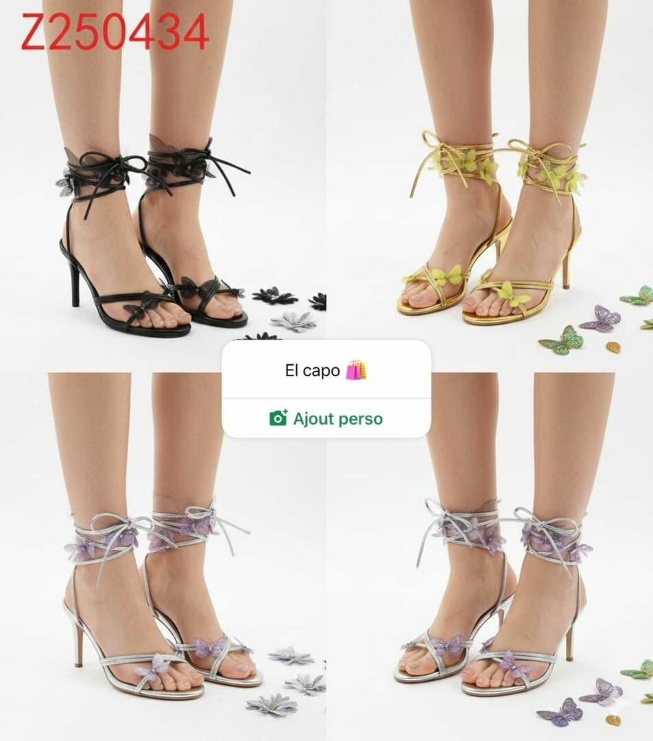 Élégantes sandales à talons hauts ornées de papillons délicats. Parfaites pour les soirées ou mariages, elles ajoutent une touche de sophistication à votre tenue. Disponibles en plusieurs couleurs pour s'adapter à votre style. Talon confortable et design raffiné pour vous démarquer avec élégance.