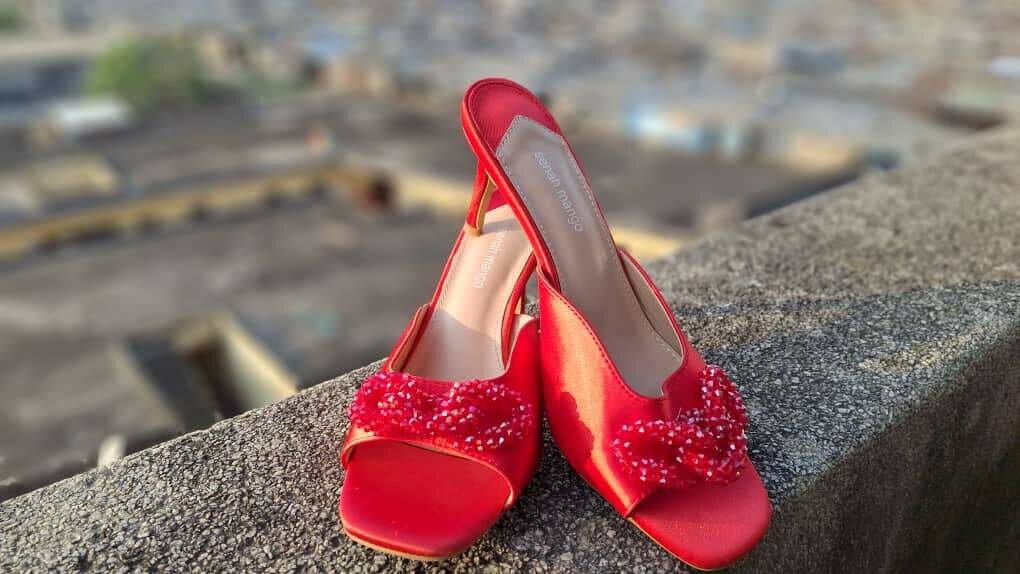 Découvrez l'élégance de ces sandales à talons rouges avec décoration perlée. Parfaites pour une soirée ou un événement spécial, elles ajoutent une touche de glamour à toute tenue. Confort et style réunis pour un look inoubliable.