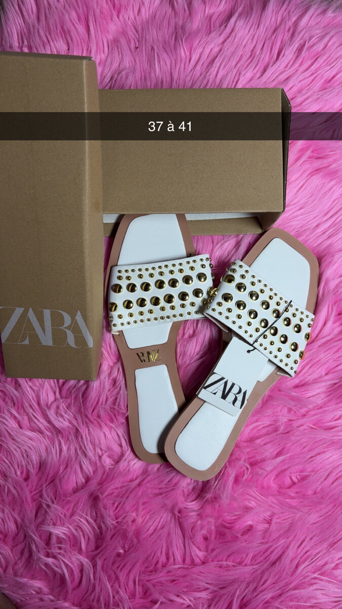 Découvrez ces élégantes sandales blanches de Zara, ornées de clous dorés pour un look chic et tendance. Parfaites pour l'été, elles offrent confort et style du 37 au 41. Idéales pour une sortie estivale ou une soirée décontractée. Ne manquez pas cette opportunité de briller!