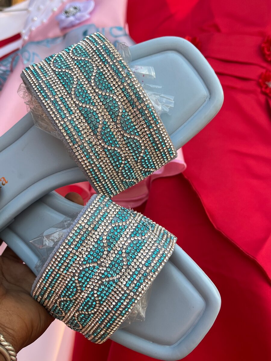 Élégantes sandales bleu clair ornées de strass, parfaites pour ajouter une touche glamour à votre tenue estivale. Confort et style garantis!