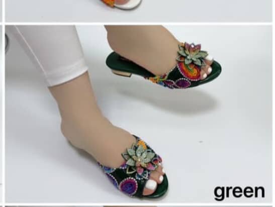 Élégantes sandales en cuir vert avec motifs floraux colorés. Parfaites pour le printemps et l'été, ces sandales offrent confort et style unique. Idéales pour les sorties décontractées ou pour ajouter une touche de couleur à votre tenue.