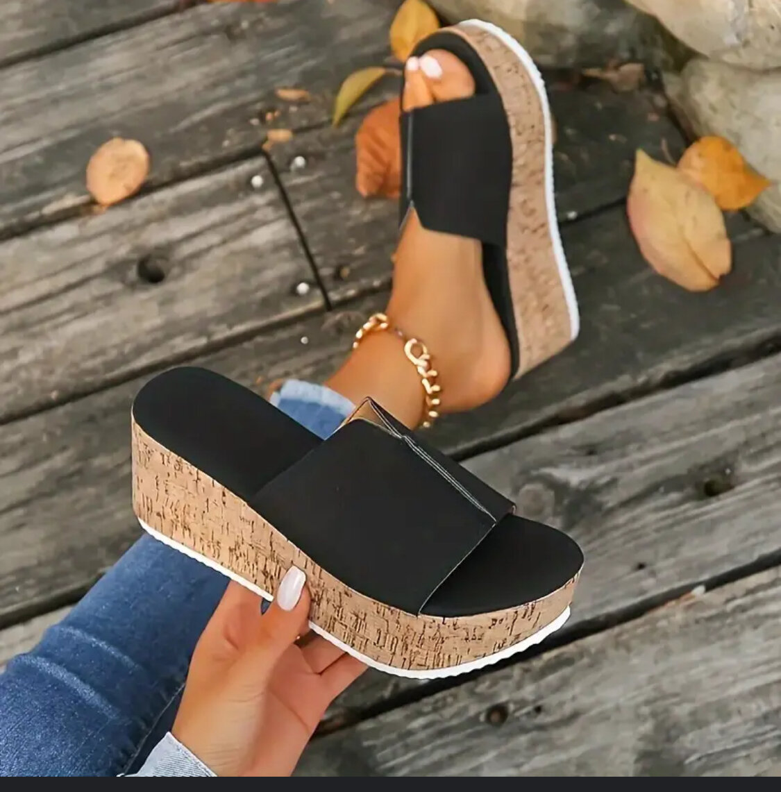 Élégantes sandales compensées pour femme, parfaites pour un look estival tendance. Talons en liège et design confortable, idéales pour sorties et vacances.