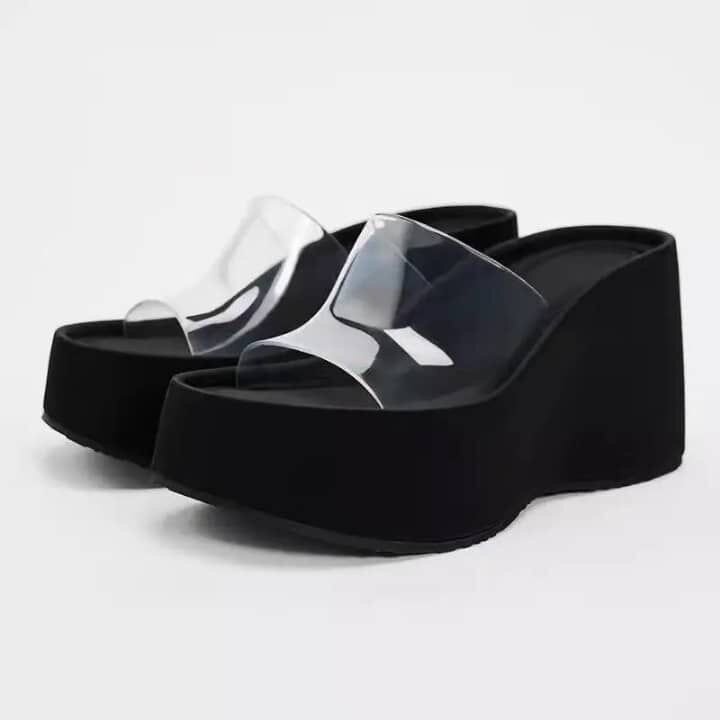 Découvrez le confort et le style moderne avec ces sandales compensées à semelle plateforme. Dotées de brides transparentes, elles ajoutent une touche chic à toute tenue décontractée ou habillée. Idéales pour une journée en ville ou une soirée entre amis !