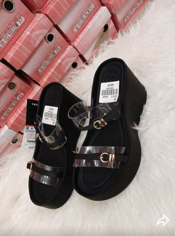 Élégantes sandales compensées avec lanières transparentes et détails en métal doré. Confortables et modernes, idéales pour l'été ou une sortie en ville. Parfaites pour ajouter une touche de style à n'importe quelle tenue.