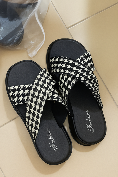 Découvrez ces sandales croisées élégantes avec un design noir et blanc. Confortables et à la mode, elles sont parfaites pour les promenades ou les sorties estivales. Un incontournable pour un look décontracté et stylé.