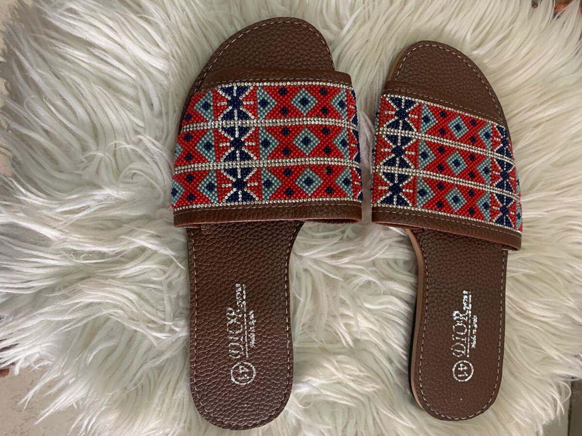 Sandales fabriquées de façon artisanale avec des perles du cuir très durable