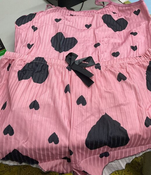 Pyjama rose avec cœurs noirs