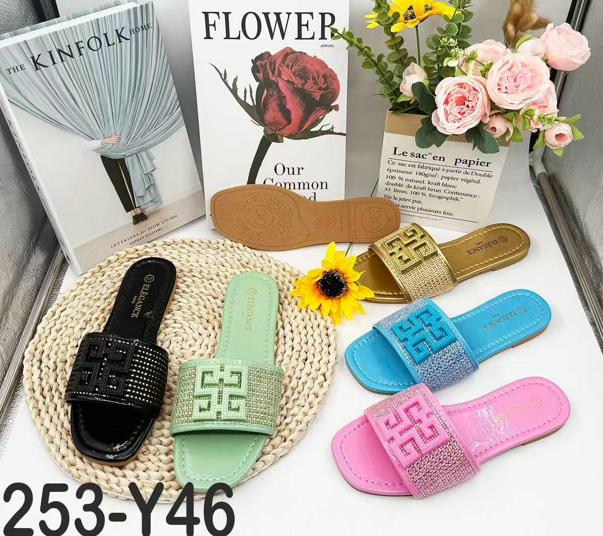 Élégantes sandales brillantes pour femmes avec ornement de strass. Parfaites pour un look estival chic et confortable. Idéales pour la plage ou une sortie décontractée. Disponible en plusieurs couleurs vives. Un must-have pour la saison!