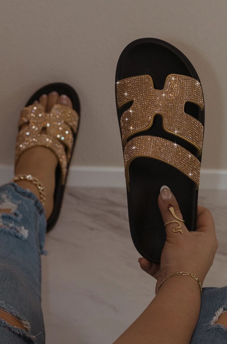 Sandales dorées brillantes