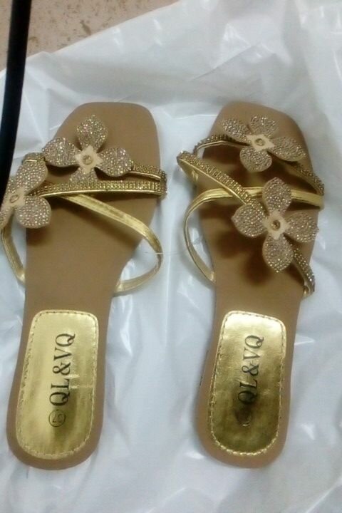 Élégantes sandales dorées avec détails floraux scintillants, idéales pour une touche de glamour à vos tenues estivales. Confortables et chic, parfaites pour les soirées d'été ou les escapades en bord de mer.