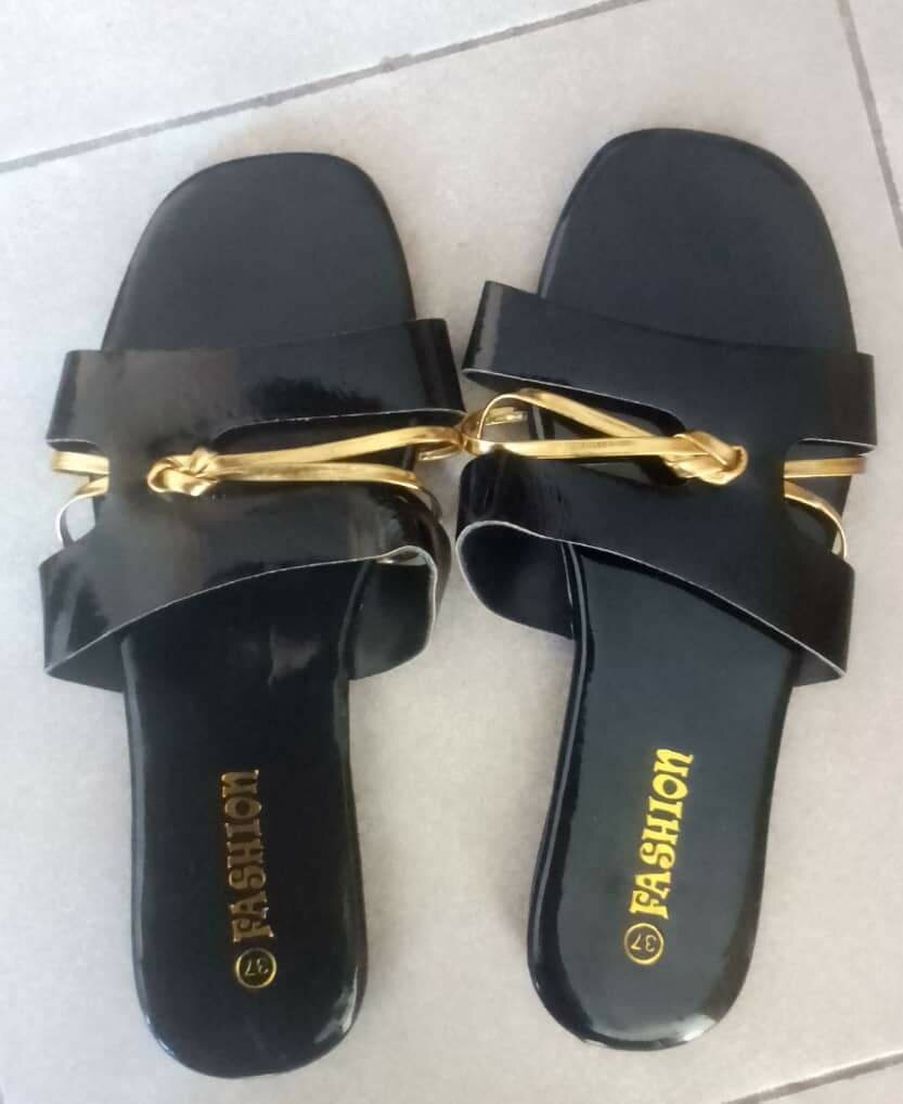 Découvrez nos sandales noires avec détails dorés, parfaites pour une allure chic et sophistiquée. Idéales pour toutes les occasions estivales, elles allient confort et style.