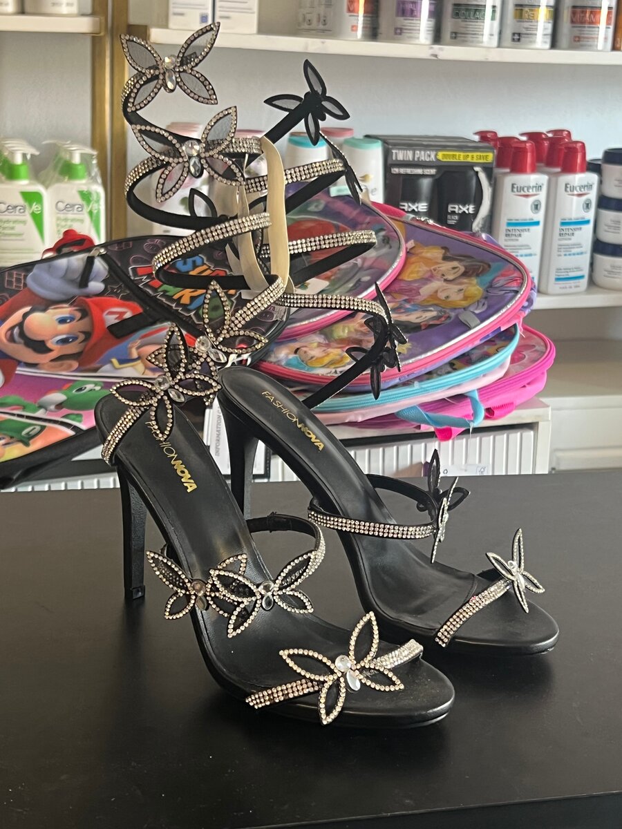 Découvrez l'élégance avec ces sandales à talons en strass et ornements floraux. Idéales pour soirées et événements spéciaux, elles ajoutent une touche glamour à toute tenue. Leur design raffiné garantit confort et style.
