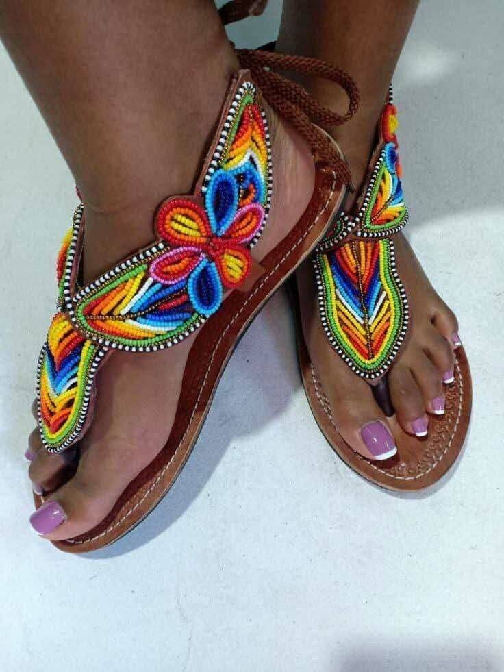 Ajoutez une touche éclatante à votre tenue avec ces sandales en cuir ornées de perles multicolores. Confortables et élégantes, elles sont idéales pour l'été ou les vacances. Parfaites pour les promenades estivales et les soirées décontractées, elles apportent style et confort à votre garde-robe. Une véritable déclaration de mode pour toutes les femmes.