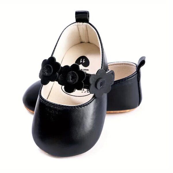 Adorables sandales noires pour enfants avec décor de fleurs roses. Idéales pour les petites fashionistas, ces sandales offrent confort et style pour les sorties estivales. À porter au parc, à la plage ou pour une promenade en ville.