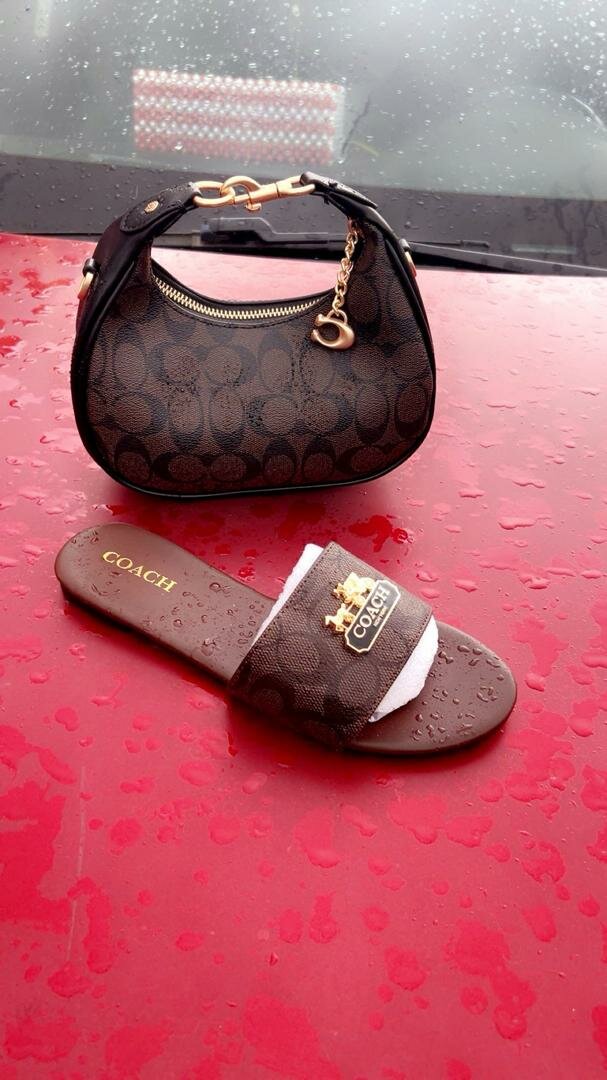 Découvrez la combinaison parfaite de style et de confort avec ces sandales Coach accompagnées d'un sac assorti. Idéal pour une sortie décontractée ou une soirée chic, cet ensemble est le choix parfait pour toute fashionista. Fabriqués avec des matériaux de haute qualité, ces accessoires ajouteront une touche d'élégance à votre tenue.