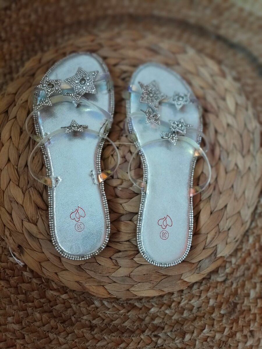 Sandales élégantes ornées d'étoiles scintillantes. Parfaites pour l'été, elles offrent un confort optimal grâce à leurs brides transparentes et leur semelle douce. Idéales pour une sortie ou une promenade en bord de mer, elles se marient facilement avec toute garde-robe. Mettez en valeur votre style avec ces sandales indispensables !