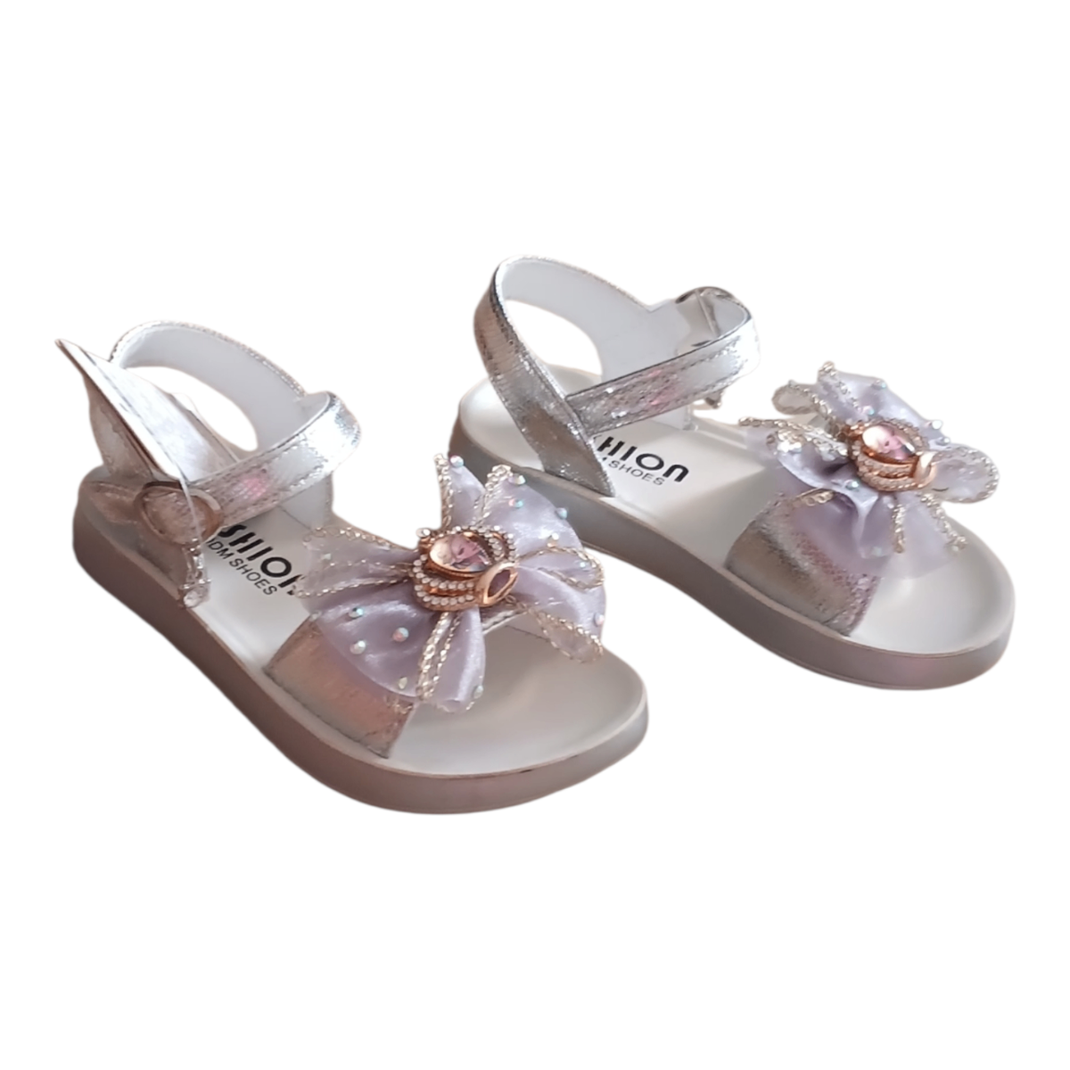 Sandales confortables pour filles, avec nœud en organza et strass. Semelle antidérapante, parfaites pour les occasions spéciales. Idéales pour les petites princesses.