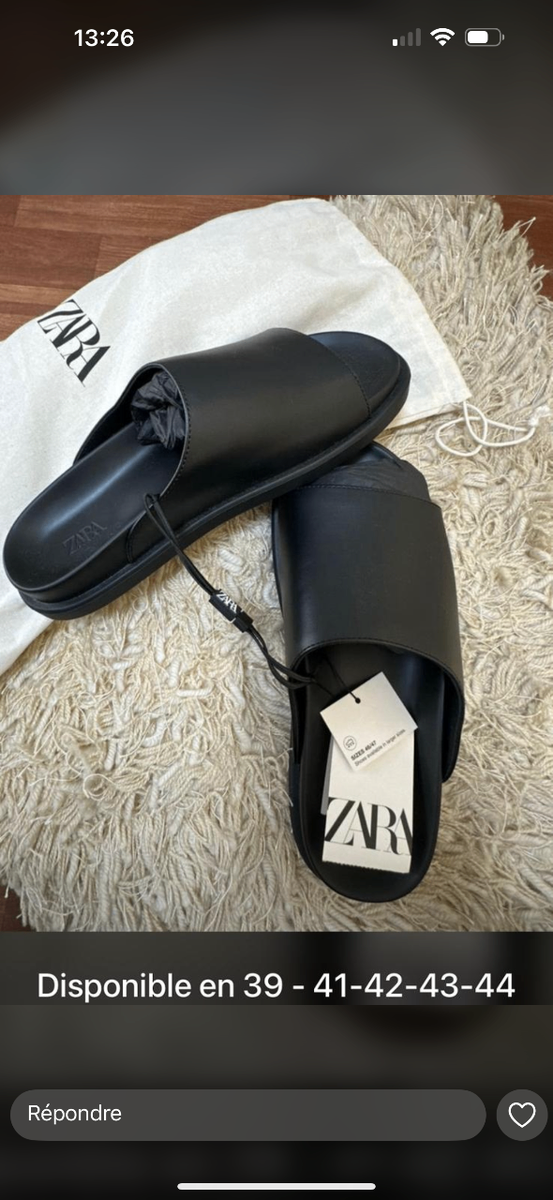 Découvrez ces élégantes sandales en cuir noir ZARA, idéales pour un style décontracté et sophistiqué. Confortables et durables, elles sont parfaites pour les sorties ou le quotidien. Disponibles en plusieurs tailles, elles s'adaptent facilement à votre garde-robe.