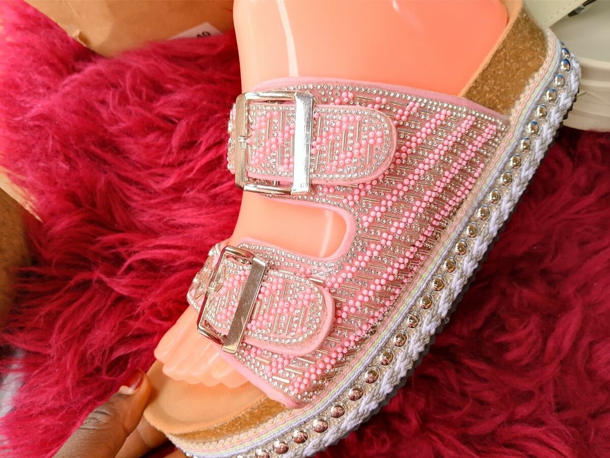 Ajoutez une touche d'élégance à votre tenue avec ces sandales à strass étincelants. Parfaites pour les occasions spéciales ou une sortie décontractée, elles complètent votre style avec confort et glamour.