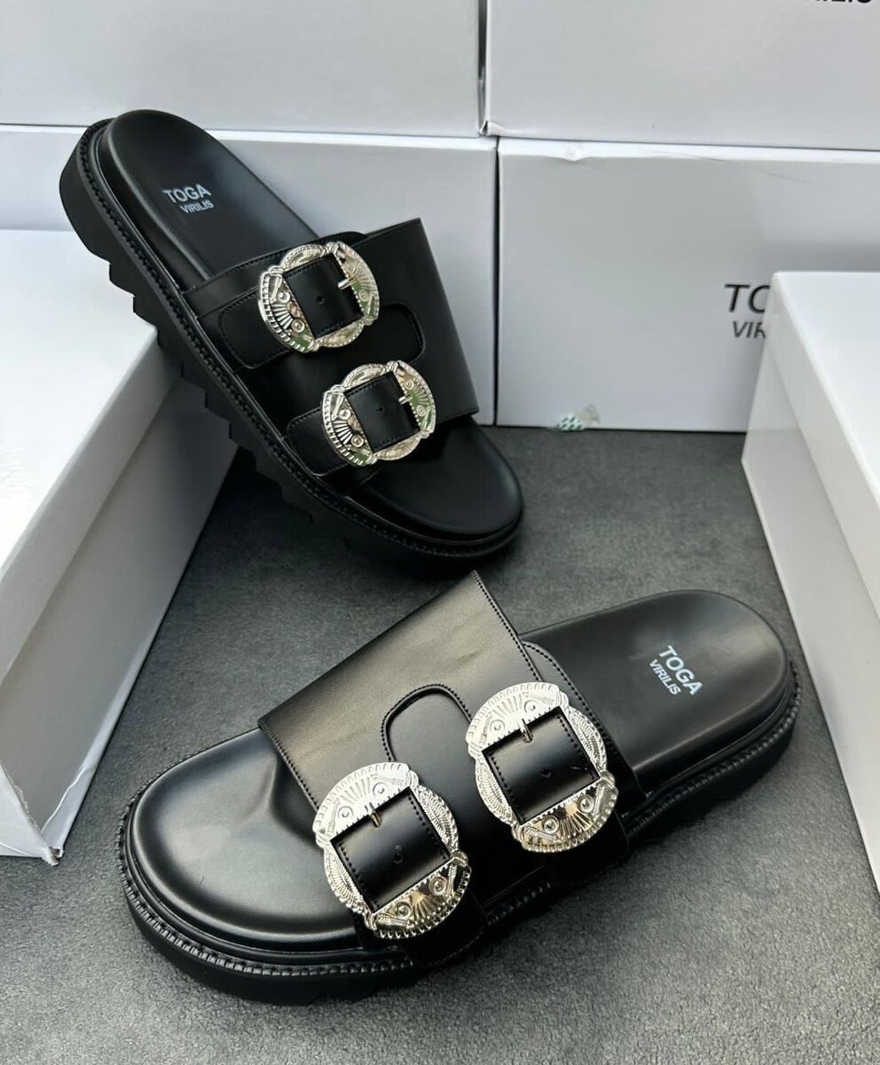 Découvrez ces élégantes sandales noires avec des boucles argentées. Un choix parfait pour un style à la fois chic et confortable. Idéal pour vos sorties estivales ou un look décontracté en ville. Offrez-vous le confort et le design moderne!