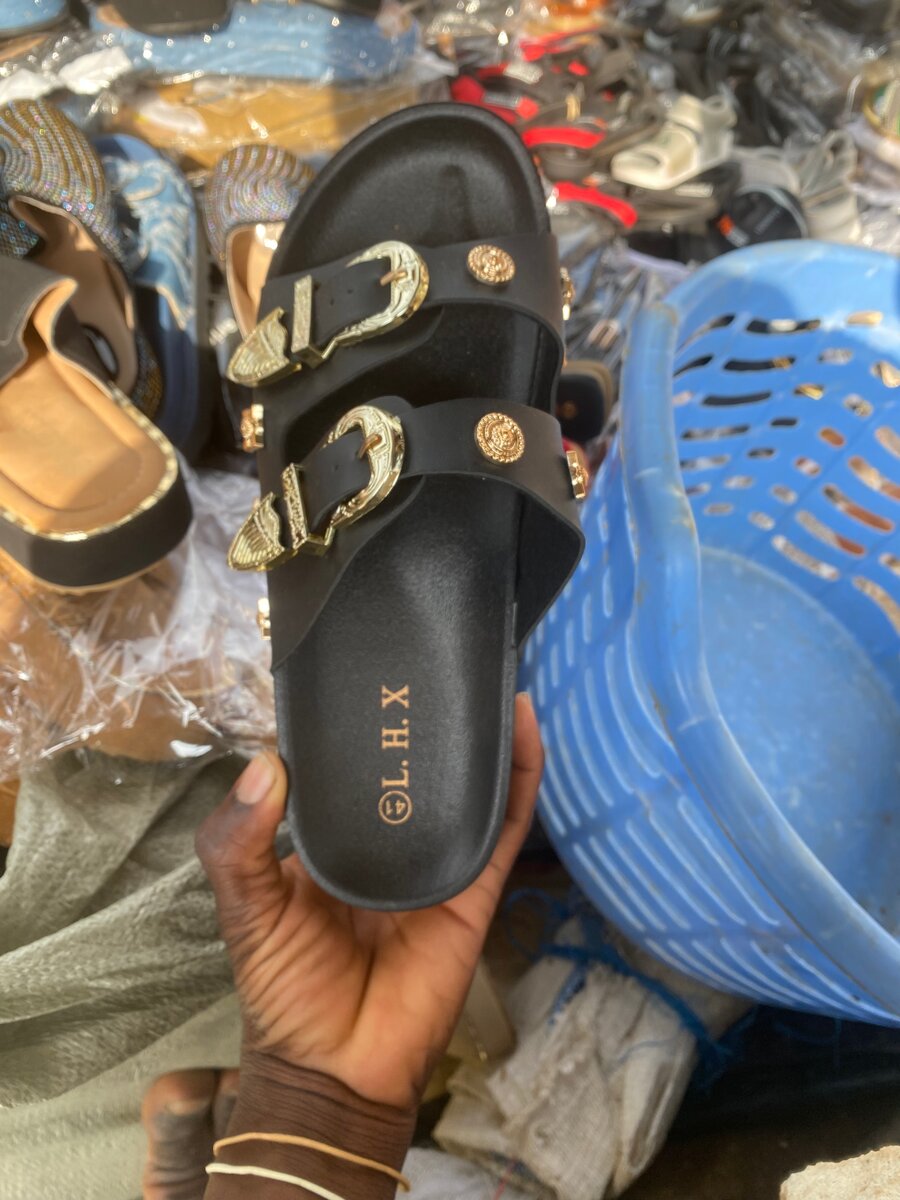 Découvrez ces sandales noires élégantes pour femme, ornées de détails dorés pour un look chic et contemporain. Idéales pour les sorties et occasions spéciales, elles combinent confort et style. Faites une déclaration de mode unique cet été!