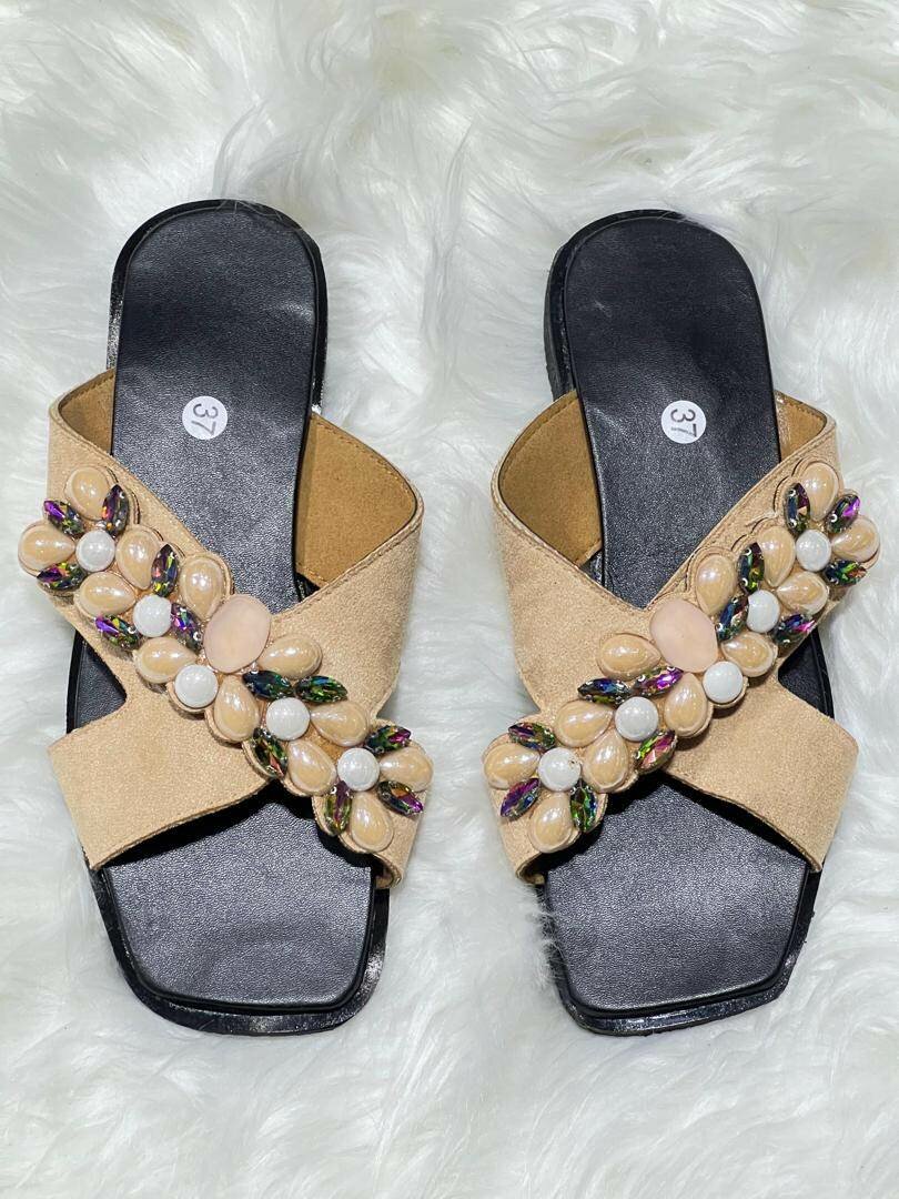 Sandales sénégalais perlé sur du simili cuir pour femme de bonne qualité, elles sont le choix parfait pour un look tendance, très pratique, donne une beauté a vos pieds-noirs, pieds -claire .