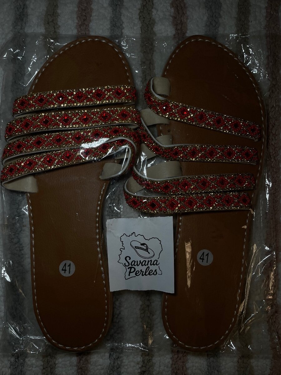 Découvrez ces sandales perlées rouges, idéales pour l'été. Avec une taille confortable, elles sont parfaites pour ajouter une touche de glamour à n'importe quel look. Fabriquées avec des matériaux de qualité, ces sandales sont le choix parfait pour les soirées ou les sorties décontractées.