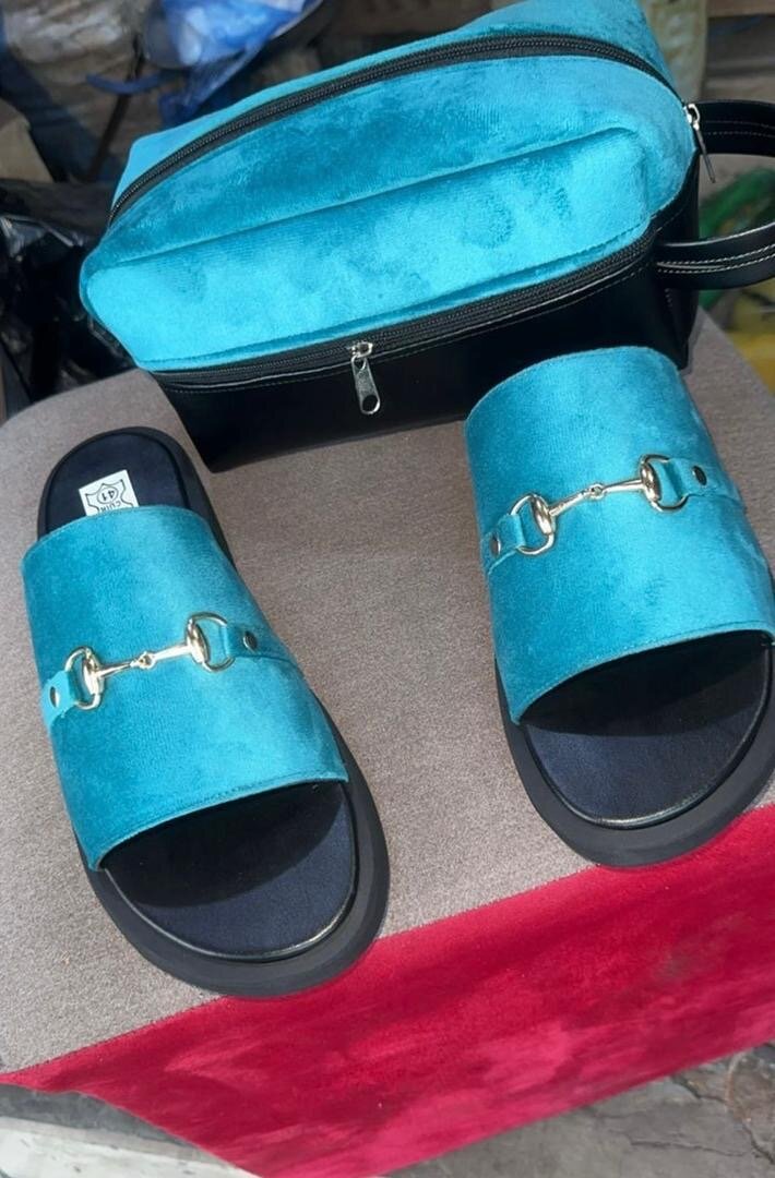 Ces sandales plates en cuir bleu sarcelle sont parfaites pour une tenue décontractée. Confortables et élégantes, elles sont idéales pour l'été. Livrées avec un sac assorti.