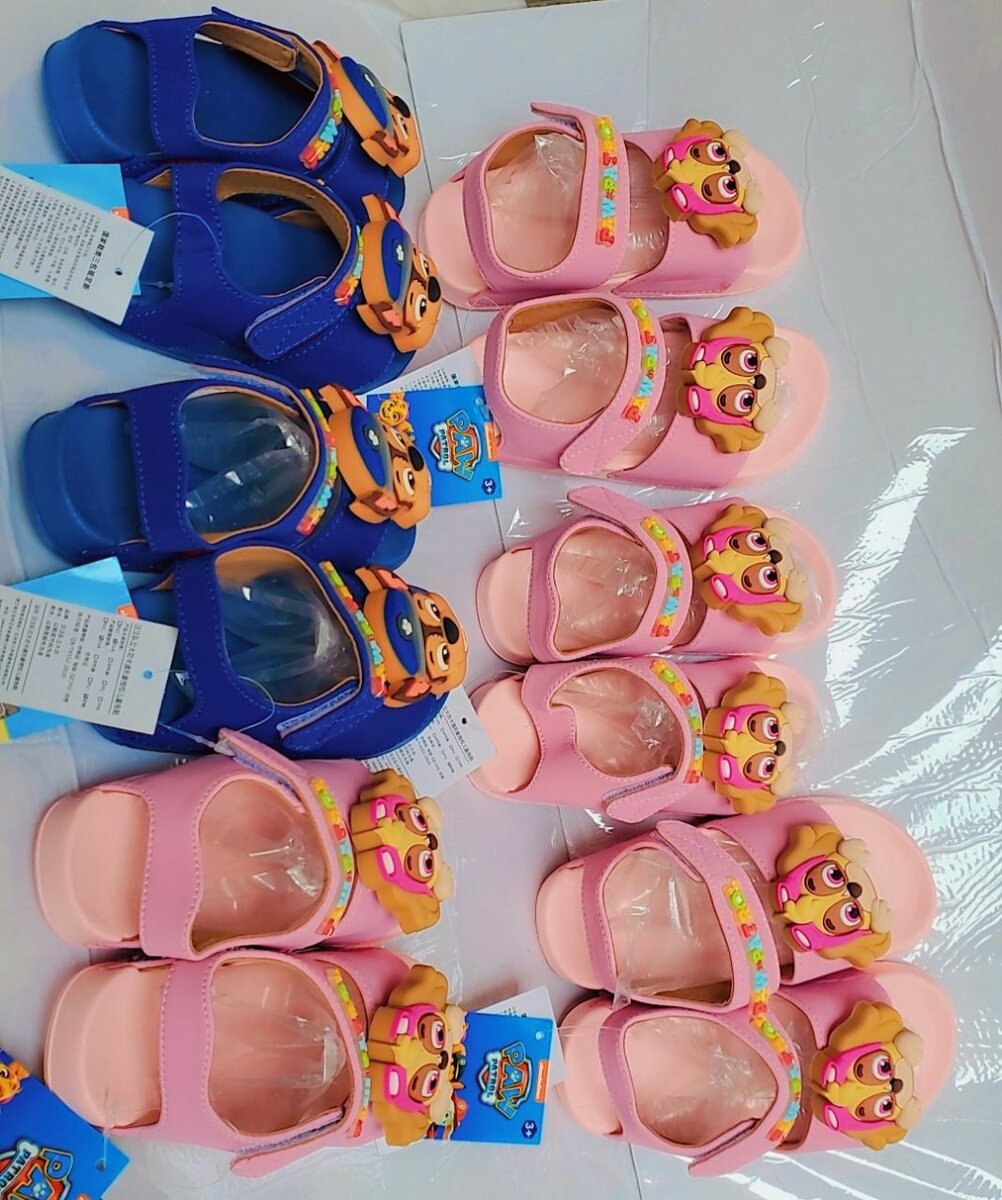 Adorables sandales pour enfants avec des personnages amusants. Confortables et durables, idéales pour une journée en plein air. Disponibles en rose et bleu.