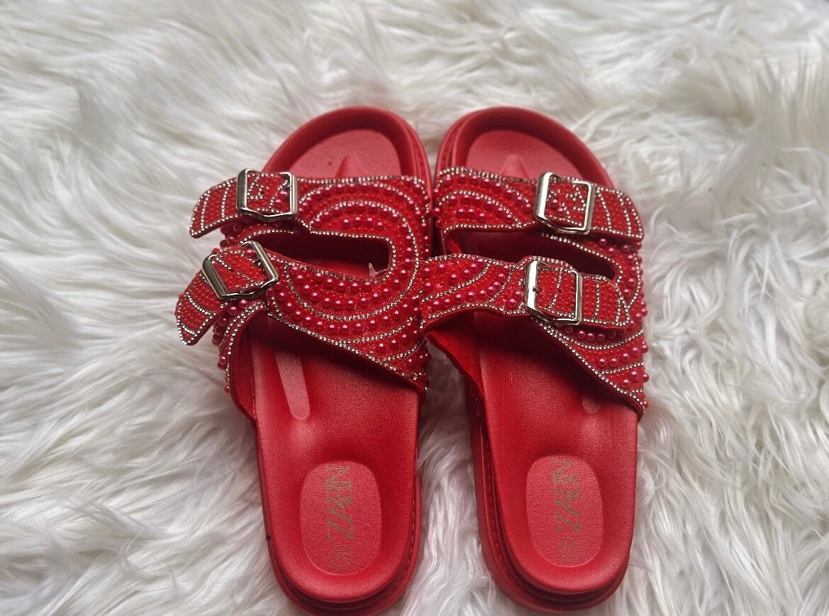 Découvrez ces sandales rouges vibrantes avec des ornements scintillants. Parfaites pour ajouter une touche d'élégance à n'importe quelle tenue estivale, elles sont confortables et stylées. Idéales pour les promenades en ville ou les événements décontractés, ces sandales deviennent un incontournable de votre garde-robe. Elles se distinguent par leur design élégant, rendant vos pas encore plus remarquables.