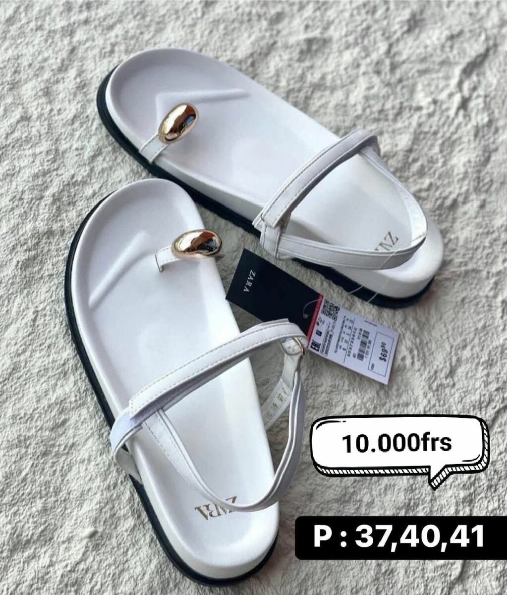 Découvrez ces sandales tongs Zara, disponibles en noir et blanc, tailles 37, 40, 41. Conçues pour offrir confort et style, ces sandales sont parfaites pour l'été. Portables au quotidien, elles sublimeront vos tenues décontractées.