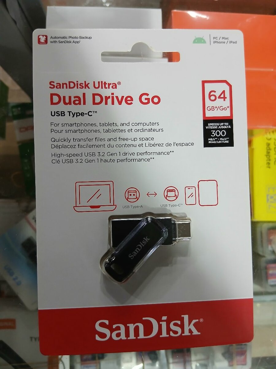 Clé USB SanDisk Ultra Dual Drive Go 64 Go, idéale pour smartphones, tablettes et ordinateurs. Profitez d'un transfert rapide et libérez de l'espace.