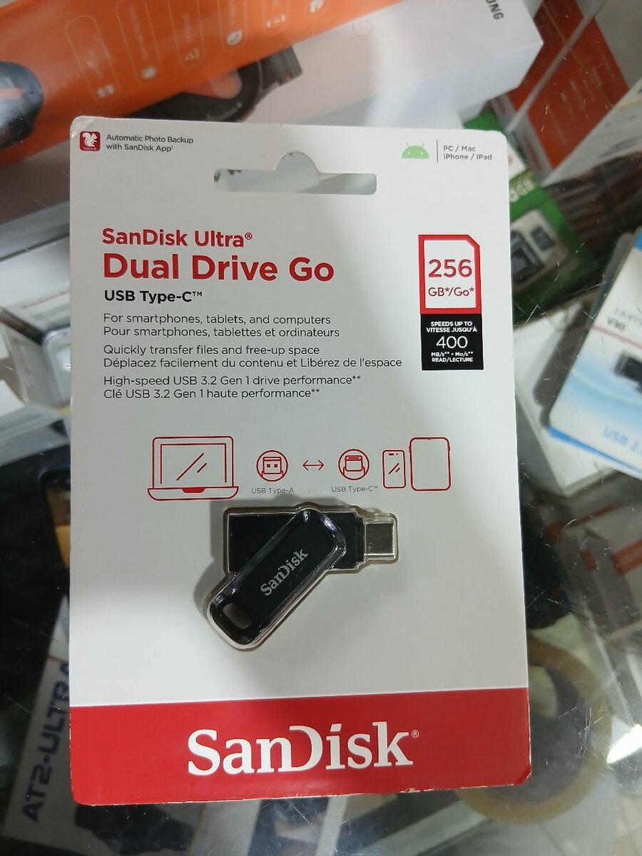 Augmentez votre stockage avec la SanDisk Ultra Dual Drive Go 256GB. Parfait pour smartphones, tablettes et ordinateurs. Échange de données rapide grâce à l'USB Type-C.