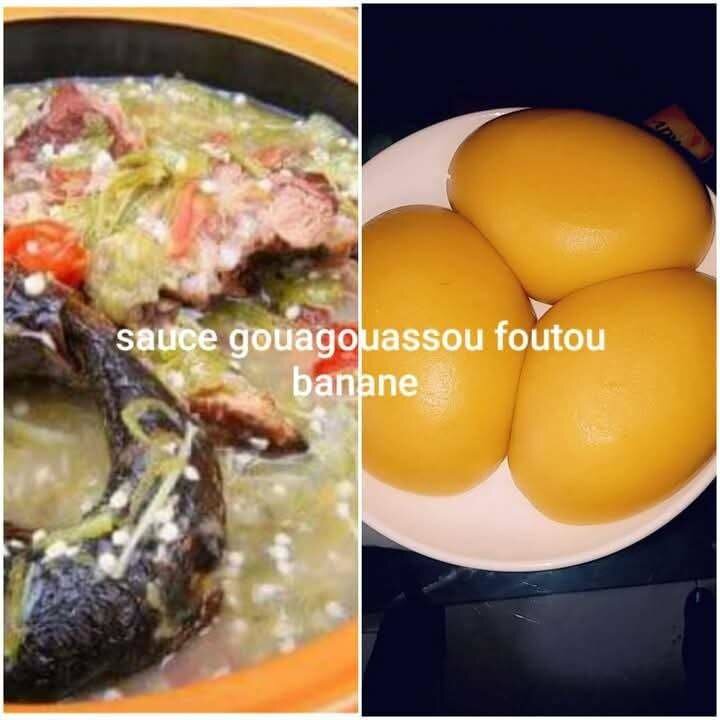 Découvrez le goût authentique de notre sauce gouagouassou accompagné de foutou banane ou riz.