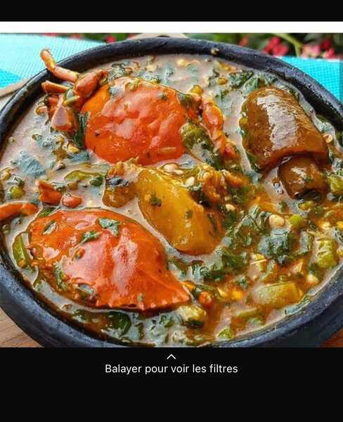 Sauce gombo avec du crabe du kplo du poisson accompagné de placali