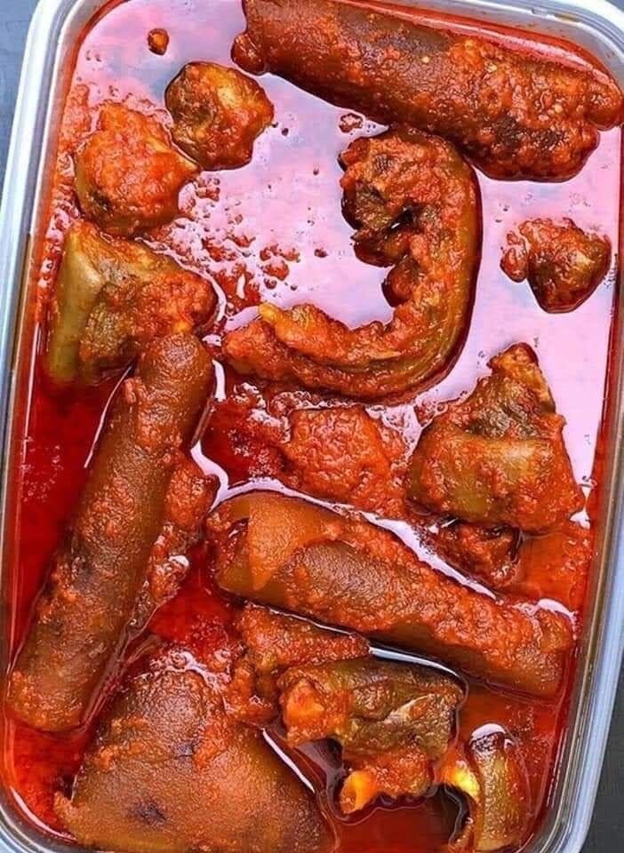 Sauce tomate avec accompagnement Peau de beœuf et patte de poulet .