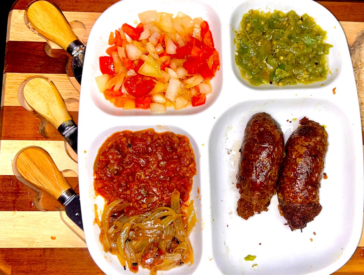 Découvrez un assortiment exotique : saucisses épicées accompagnées de tomates fraîches, oignons croustillants, et sauces vibrantes. Idéal pour des repas à partager ou des occasions spéciales. Succombez à cette expérience culinaire unique et savoureuse.