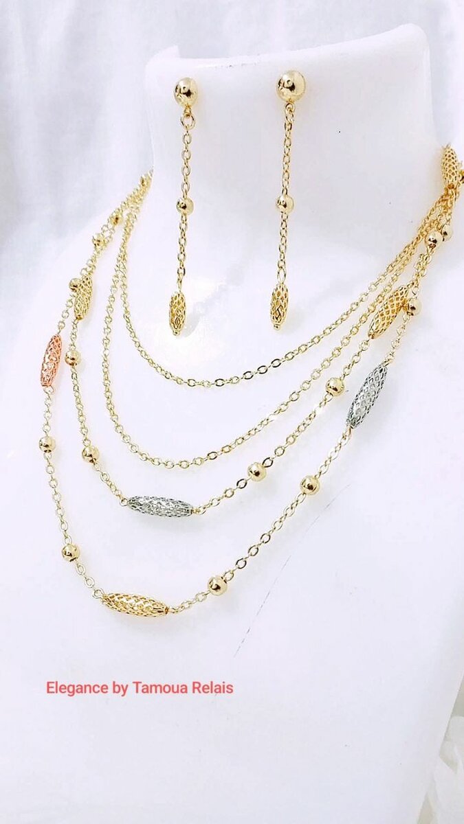 Sublimez votre style avec cet ensemble collier et boucles d'oreilles en chaîne dorée.
