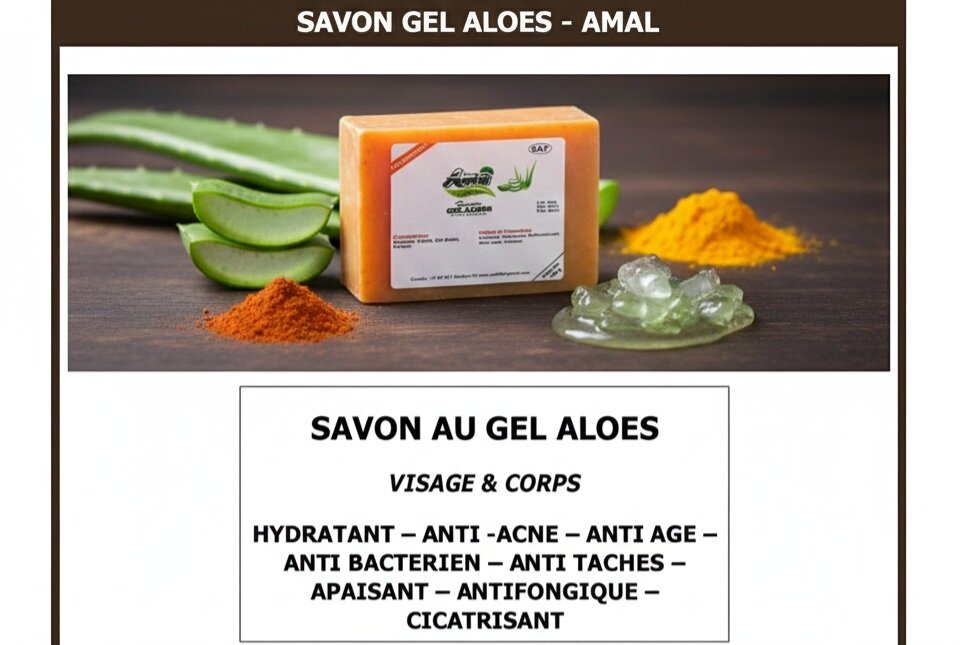 Savon hydratant enrichi d'aloès pour le visage et le corps. Combat l'acné et les signes de l'âge. Anti-bactérien, anti-taches et cicatrisant. Parfait pour une peau apaisée et protégée.