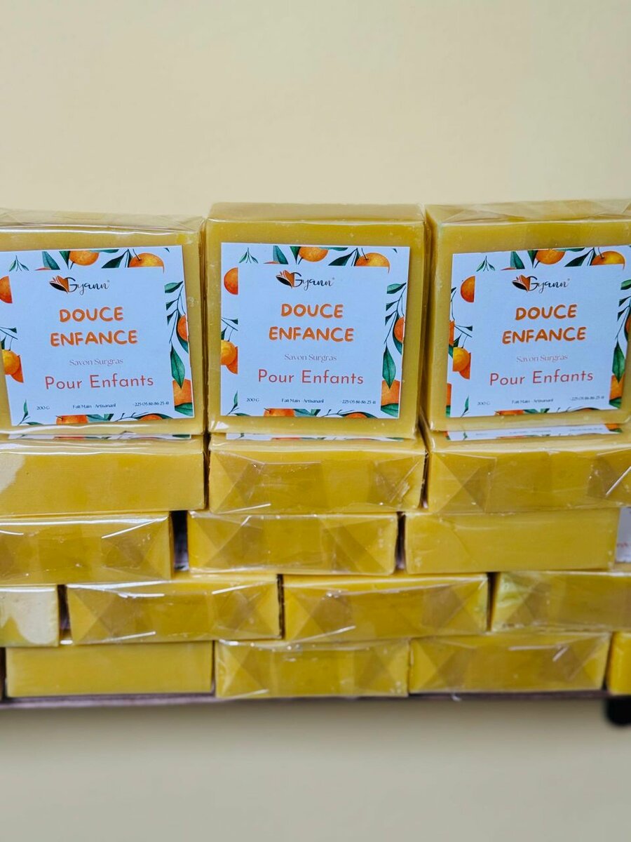 Douce enfance est un excellent savon doux et surgras qui élimine progressivement les boutons et les bourbouilles chez les enfants à partir de 1an jusqu'à 10ans.