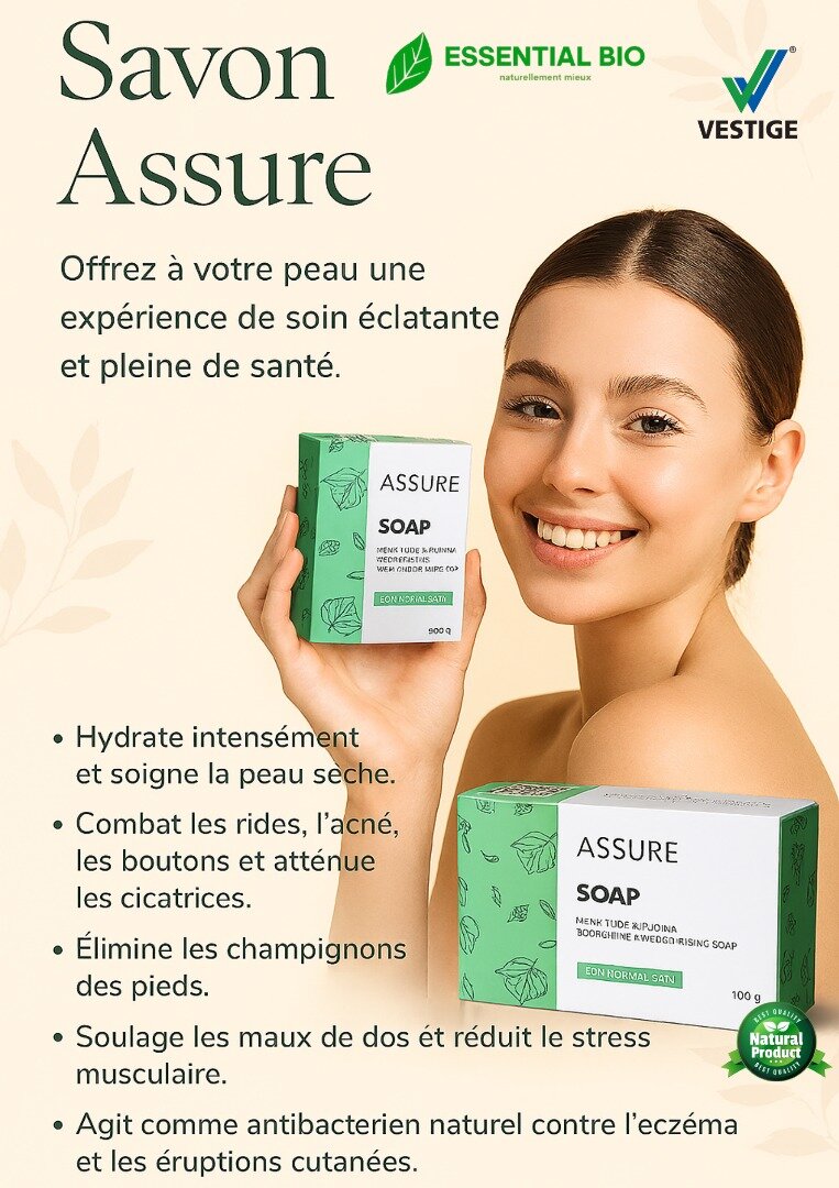 Découvrez le Savon Assure pour une peau hydratée et éclatante. Enrichi en ingrédients naturels, il combat l'acné, réduit les rides et soulage les irritations. Parfait pour un soin quotidien sain et naturel. Idéal pour tous types de peau, ce savon nourrissant vous garantit une expérience revitalisante.