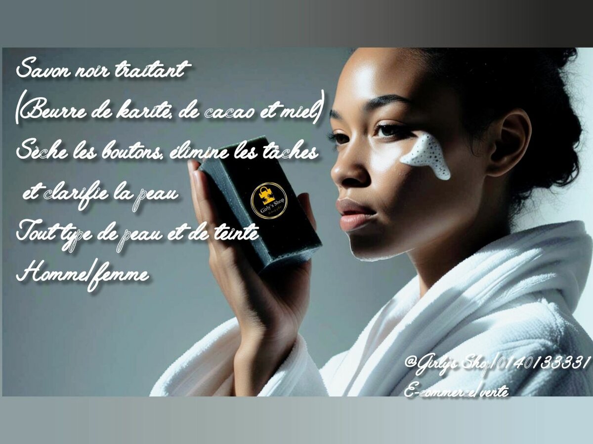 Savon noir traitant au beurre de karité, beurre de cacao et miel. Sèche les boutons du visage et du corps, élimine le gras du visage, clarifie, hydrate et nettoie la peau. Redonne un teint naturellement éclatant. Lutte contre les démangeaisons et inconforts du corps.